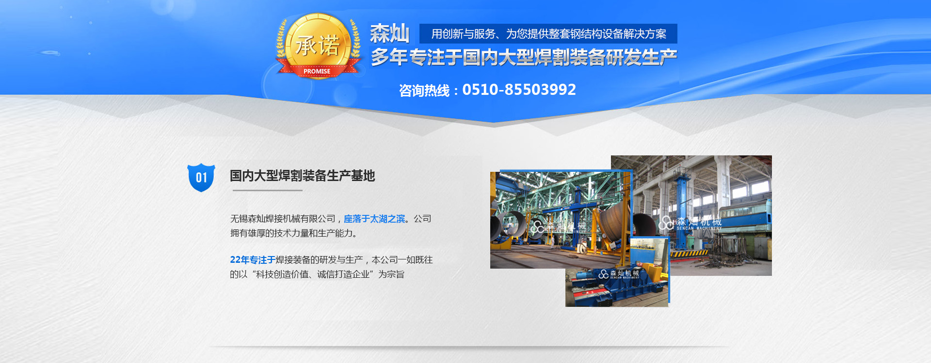 無(wú)錫森燦焊接機(jī)械有限公司,座落于太湖之濱。公司擁有雄厚的技術(shù)力量和生產(chǎn)能力,核心產(chǎn)品:變位機(jī),滾輪架,操作機(jī),化工儲(chǔ)罐,防腐儲(chǔ)罐,鋼襯塑儲(chǔ)罐,本公司產(chǎn)品的主要特點(diǎn)是標(biāo)準(zhǔn)化、專(zhuān)業(yè)化、批量化,借鑒國(guó)內(nèi)外設(shè)計(jì)、制造經(jīng)驗(yàn),結(jié)合國(guó)內(nèi)外用戶(hù)的使用習(xí)慣,形成了化工防腐設(shè)備系列、焊接裝備系列、港口吊機(jī)系列等幾大系列標(biāo)準(zhǔn)化、專(zhuān)業(yè)化產(chǎn)品,廣泛用于發(fā)電、鍋爐、石化、冶金、機(jī)械、船舶,化工、染料、農(nóng)藥、儲(chǔ)運(yùn)、等行業(yè)。 本公司將一如既往地以‘科技創(chuàng)造價(jià)值、誠(chéng)信打造企業(yè)’為宗旨,做好產(chǎn)品服務(wù),為用戶(hù)不斷提升競(jìng)爭(zhēng)力